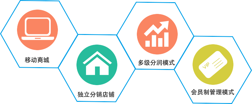 集“移動商城+獨(dú)立分銷店鋪+多級分潤模式/會員制管理模式 幫助企業(yè)搭建移動分銷平臺,基于社交分享幫助產(chǎn)品銷售、渠道管理、品牌推廣